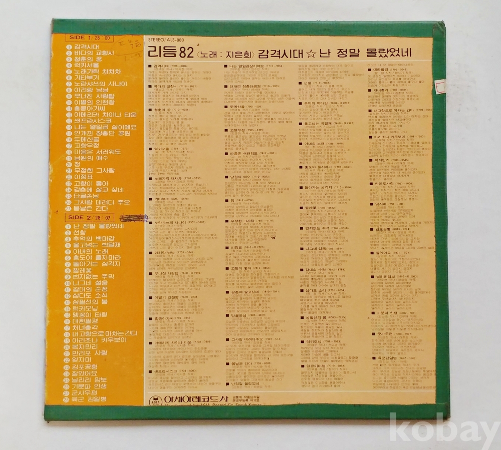 EX : 약간의 마모, 모서리 찢김 존재 음반상태