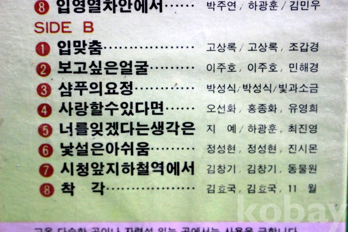 수록 곡 목은 사진을 참조하시기 바랍니다