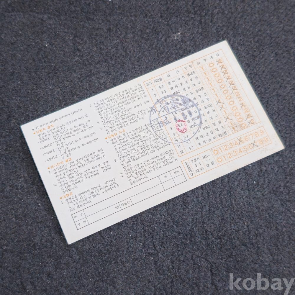 (((프로야구자료/야구복권/호돌이))) 1985년 야구복권 (제7회) (오비 윤석환)