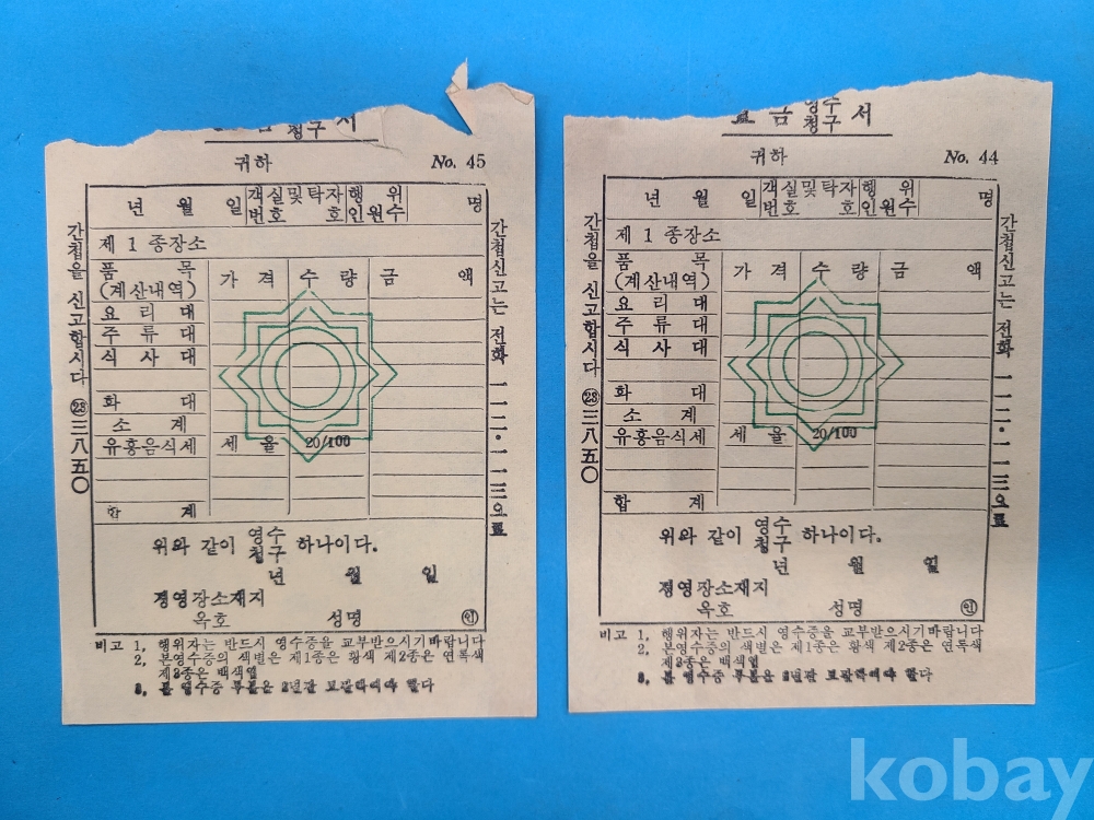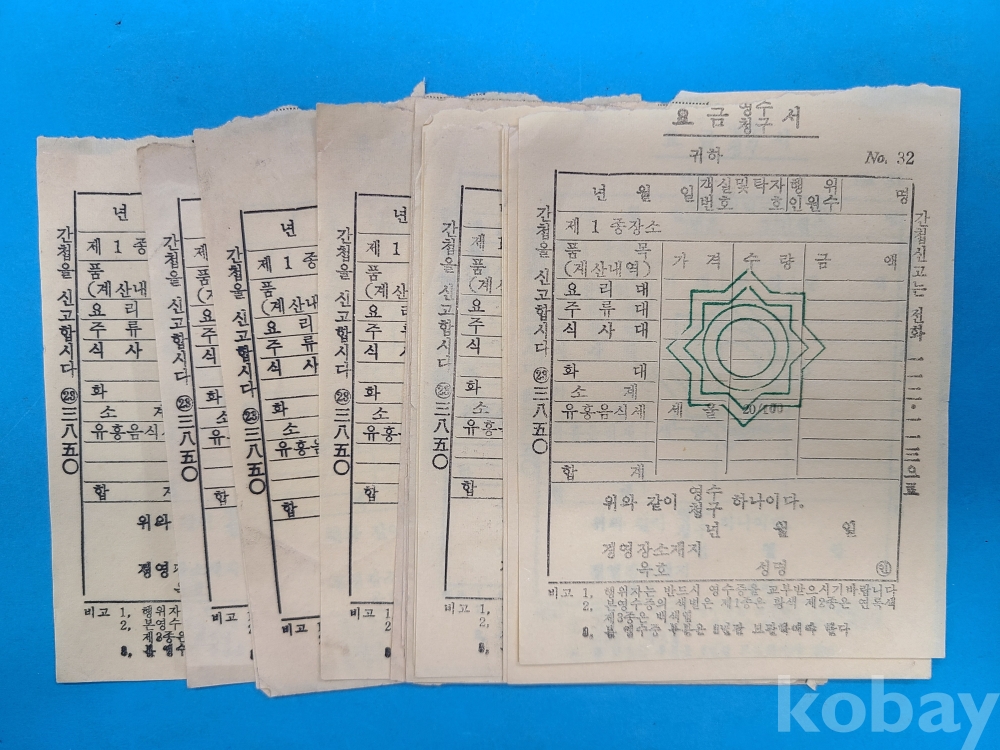 **** 유흥음식점 영수증 15부/요리대, 주류대, 식사대, 화대, 유흥음식세 등..