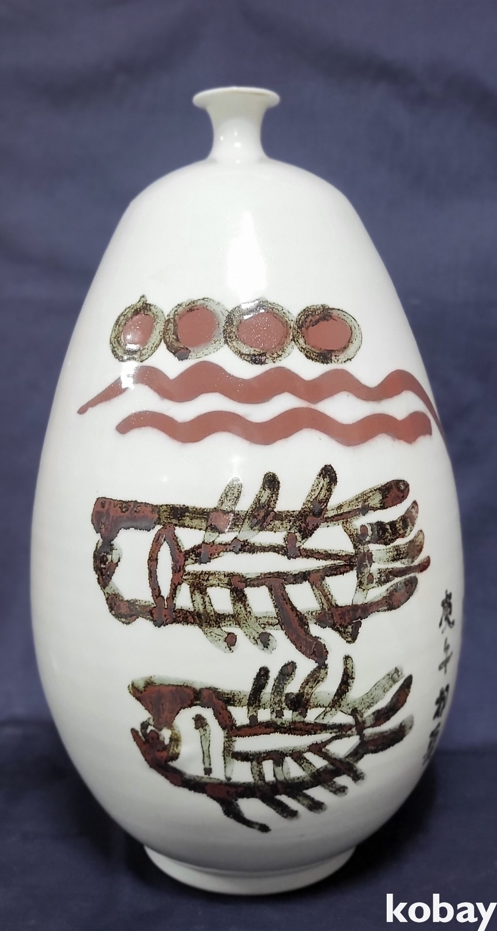 유명 1세대 서양화가 홍종명 철화 어문양 소구병 고당 조두언 합작품입니다.