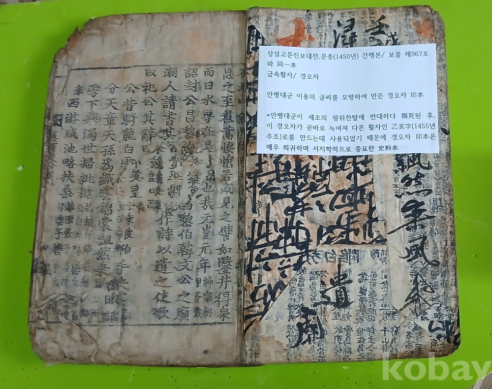 안평대군이 세조의 왕위찬탈을 반대하다 사약을 받고 죽은 뒤 바로 경오자를 녹여서 을해자를 주조하였기 때문에 경오자로 인쇄된 활자본은 매우 희귀하다.