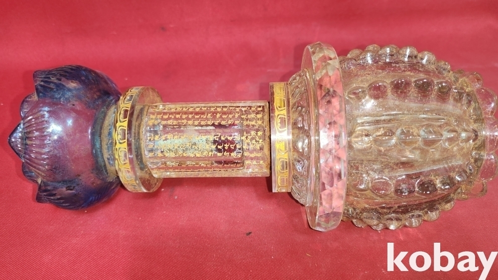 목선에 8각에는 세로로 불교용 범어(梵語)가 음각으로 새겨져 있는 공력이 많이 가미된 특별한 사리함입니다, 목선에 8각 내부에는 사리가 들어 있어서 눈에 보입니다,