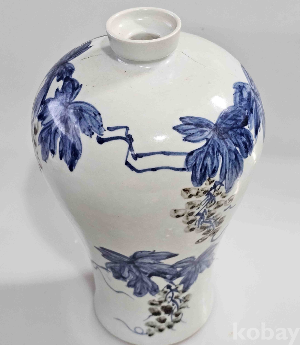 @상태: 연대감 좋은 철화청화백자 포도넝쿨문 매병입니다.