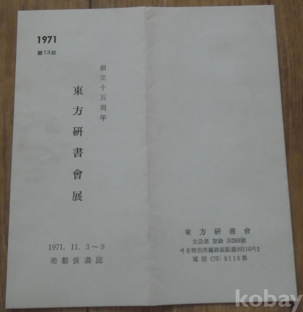 1971년 동방연서회 창립15주년 회원전(미도파화랑)