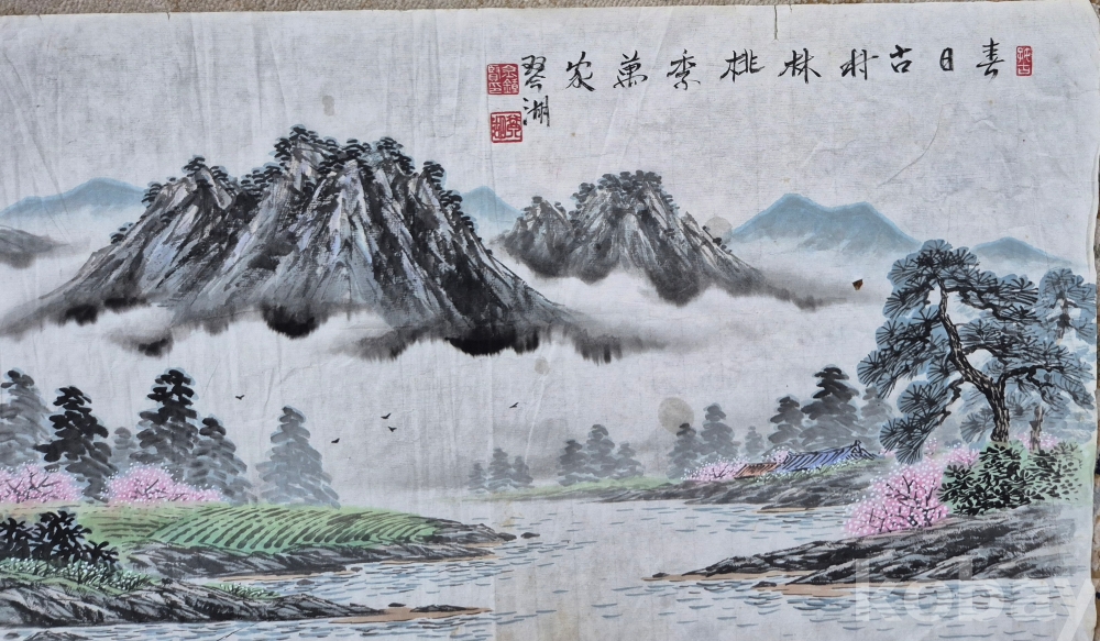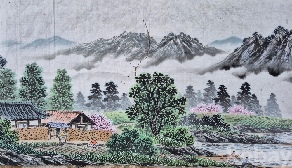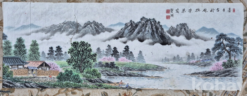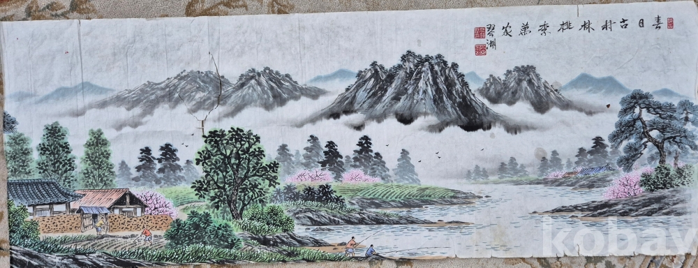 작품성 좋은 시원스럽게 잘 그려진 춘경 산수화'이오니 작품 이미지상 수결 및 낙관'등 두루 잘 참조하시고