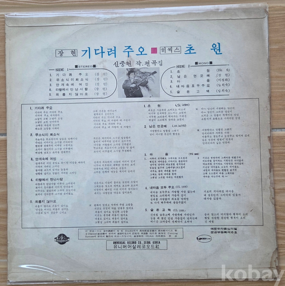 자켓상태 | EX : 약간의 마모, 모서리 찢김 존재 | 음반상태 | EX : 재생에 영향 없는 가벼운 기스 존재 | 발매정보 | 초반 | 가사지여부 | 무 |