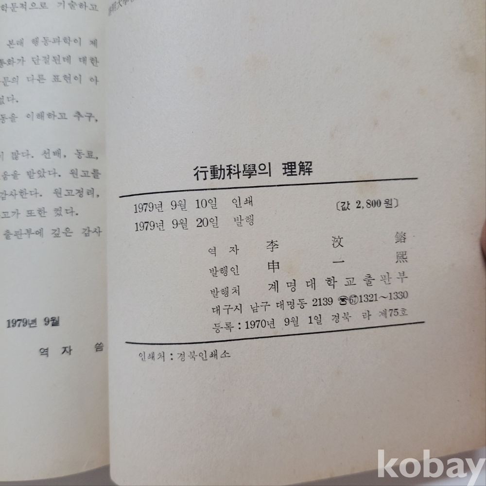 [희귀본] 행동과학의 이해 : 1979년 초판본 - 많은 입찰 바랍니다. 귀중한 자료 도서입니다.