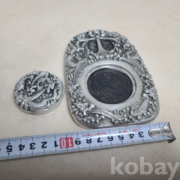 통 백동 주물로 제작된 벼루 4종입니다 속이 꽉차있어서 매우 묵직하고 고급스런 벼루입니다. 실사용도 좋고 선물용으로도 좋습니다