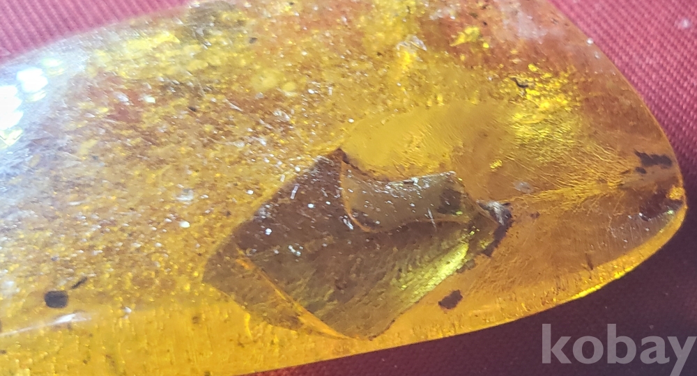 불빛이 투과되며 내부에 이물질이 들어있는 호박입니다,