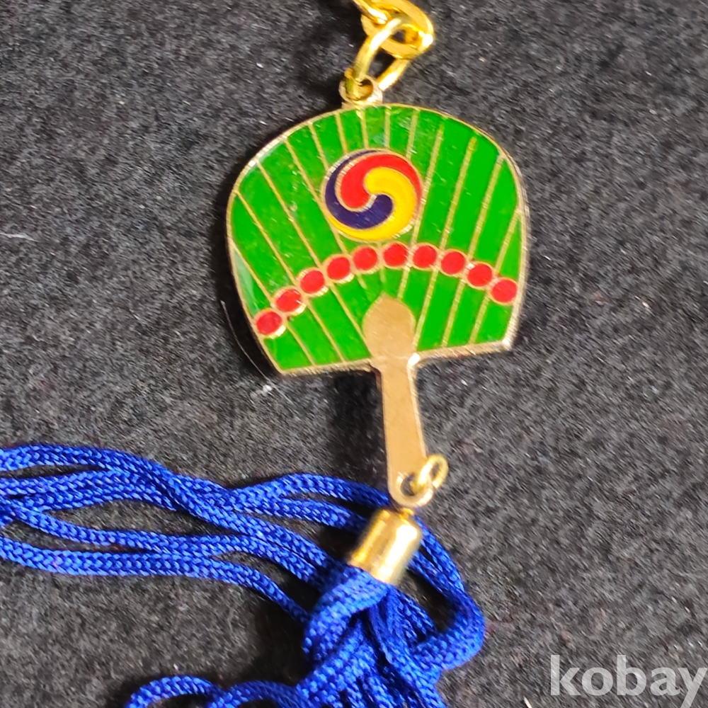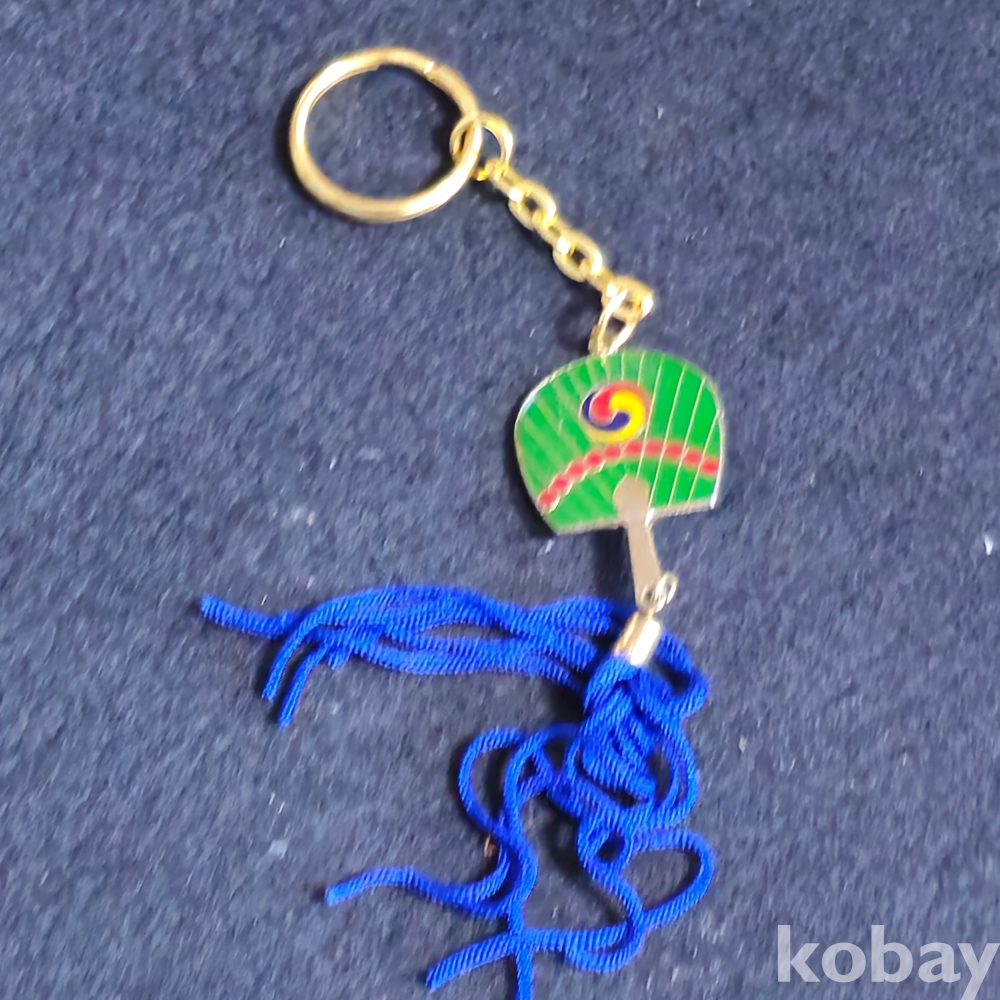 (((근현대사자료/키홀더/키링/열쇠고리/가방고리))) 오래전 우리고유의 태극문양있는 부채모습 금속 키홀더 (녹색)