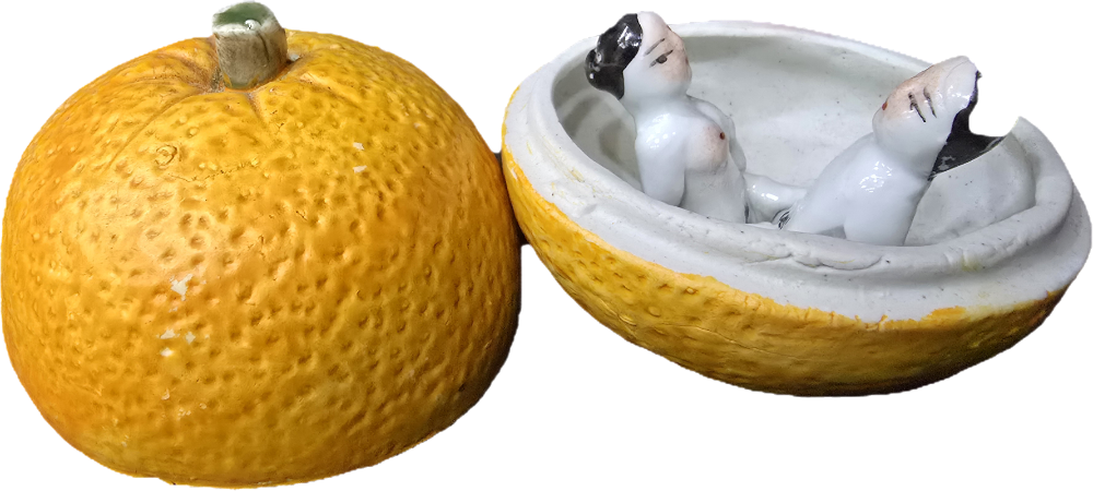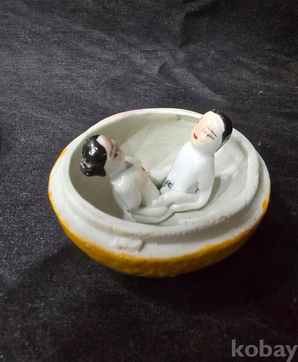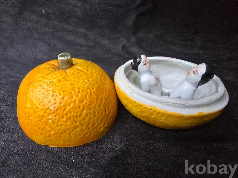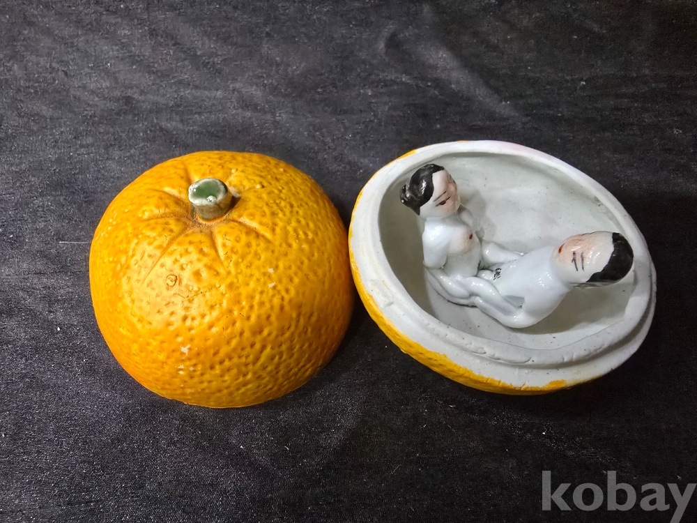 작품도자기/ 제주감귤 속안에서 사랑을 나누는 남녀 / 백자도자기 -수집용