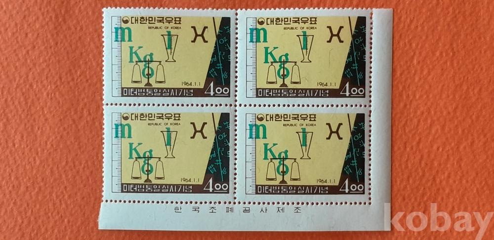 1964년 1월 1일 발행 미터법 통일 실시 기념 4매 명판 입니다.