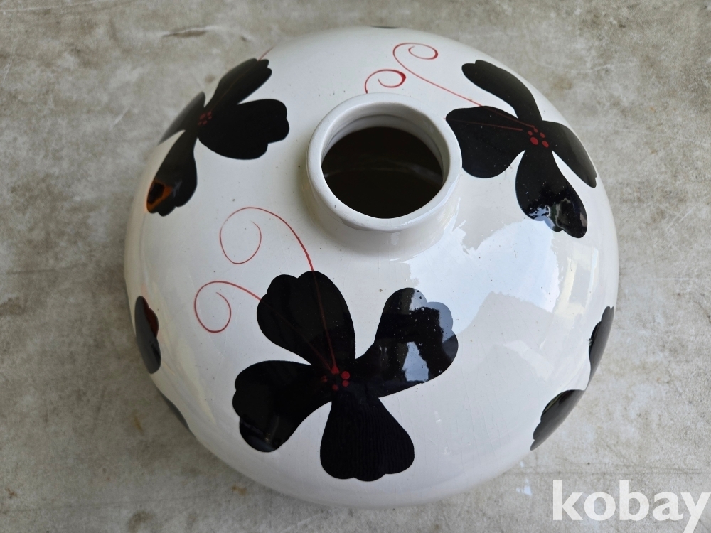 꽃 문양 입이 작고 납작한 도자기 입니다.