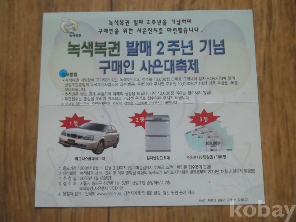 2001년 녹색복권 발매2주년기념 구매인 사은대축제