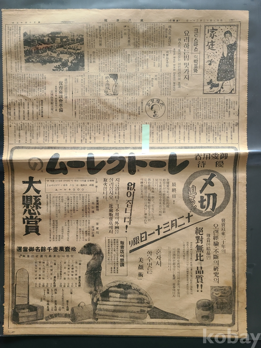 ▶동아일보 1934.12.21./강경애 연재소설 ‘인간문제’.용각산 광고.이윤재의 글.레도크림 대현상 광고/3.4면만 있음