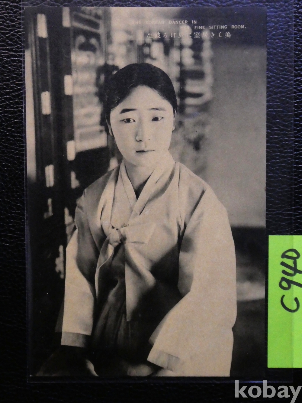 ▣한국근대엽서(진본): 거실에 있는 아름다운 기생의 모습, 대정사진공예소 발행/1매.