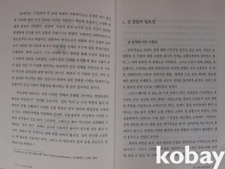 앞에 96년 처음 개설한 '성의 역사'라는 강좌에 천여 명의 수강생이 생기고 그에 따라 교재를 만들게 되었다는 머리말이 있다.