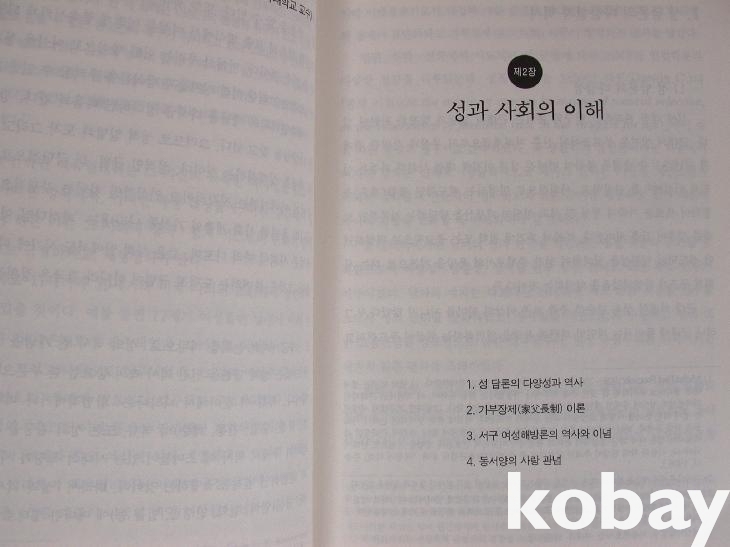 성 담론이 왜 필요한가부터 성과 사회, 동서양의 성으로 우리 고대와 중세 및 중국의 가족, 성, 예교 등을 살피고 마지막에 서양 성의 역사를 실어 모두 8장으로 구성하였다. 부록으로 <성 과학화의 기초 개념>이라는 용어설명이 있다.
