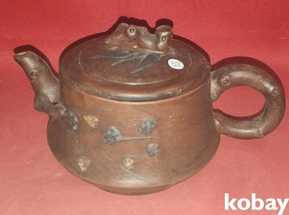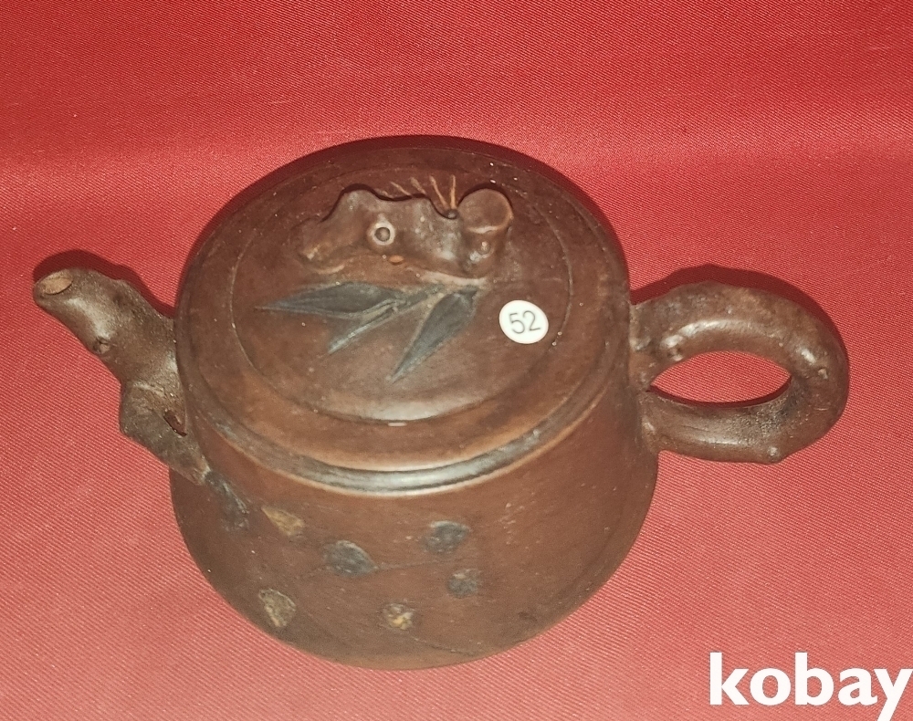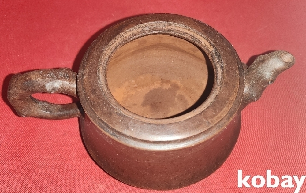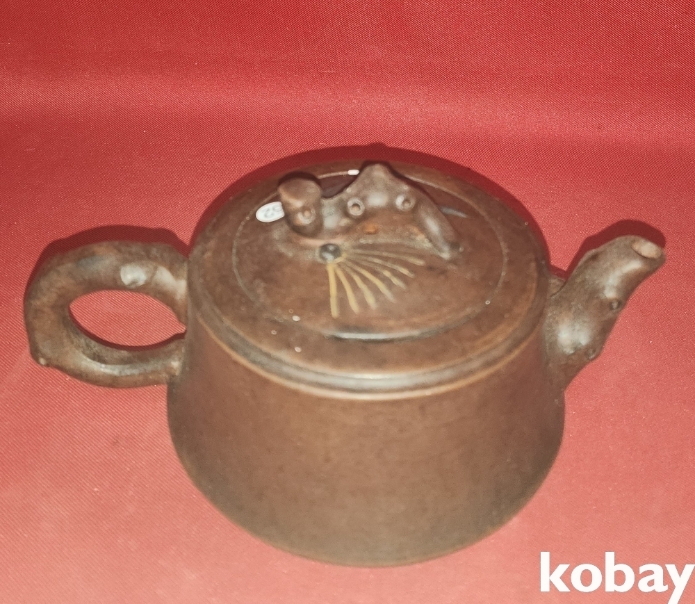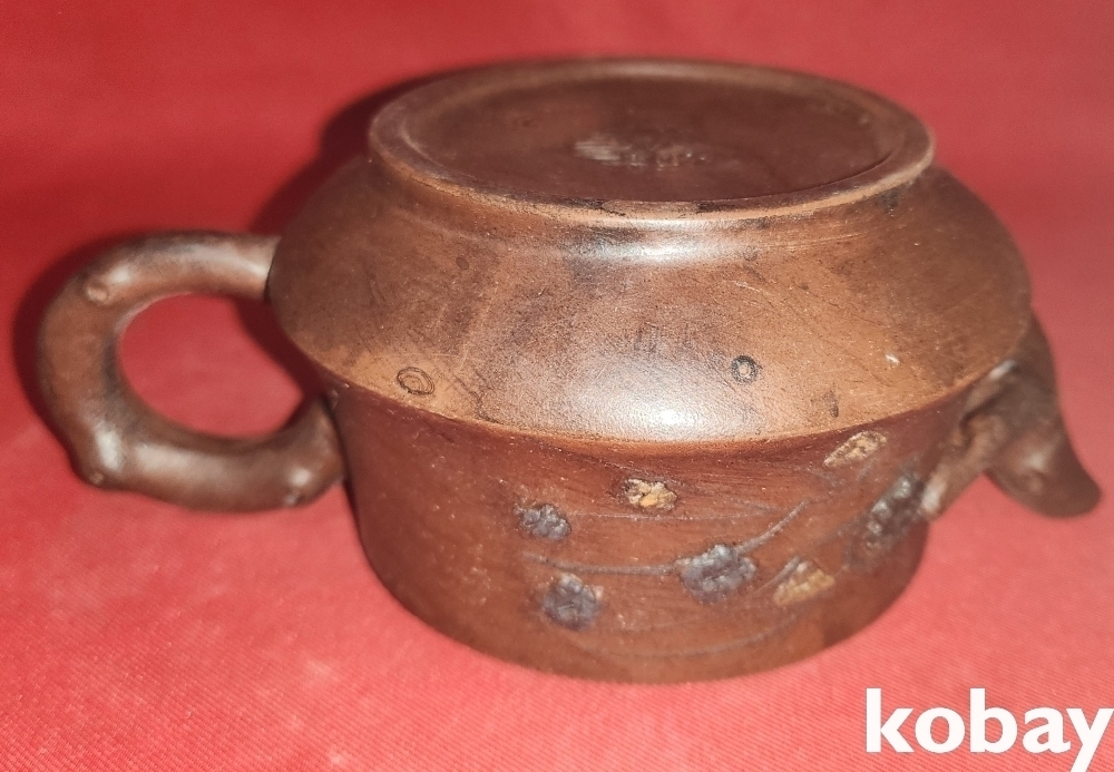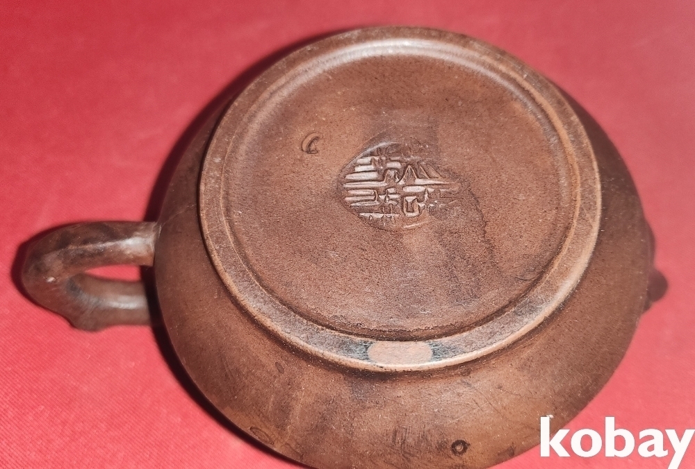 굽쪽에 제작 수결이 보이는 자사로 만든 엽전 문양 다관입니다,