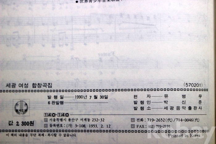 (노래책) 세계여성합창곡집 - 유병무 編 / 1990년. 세광음악출판사 발행
