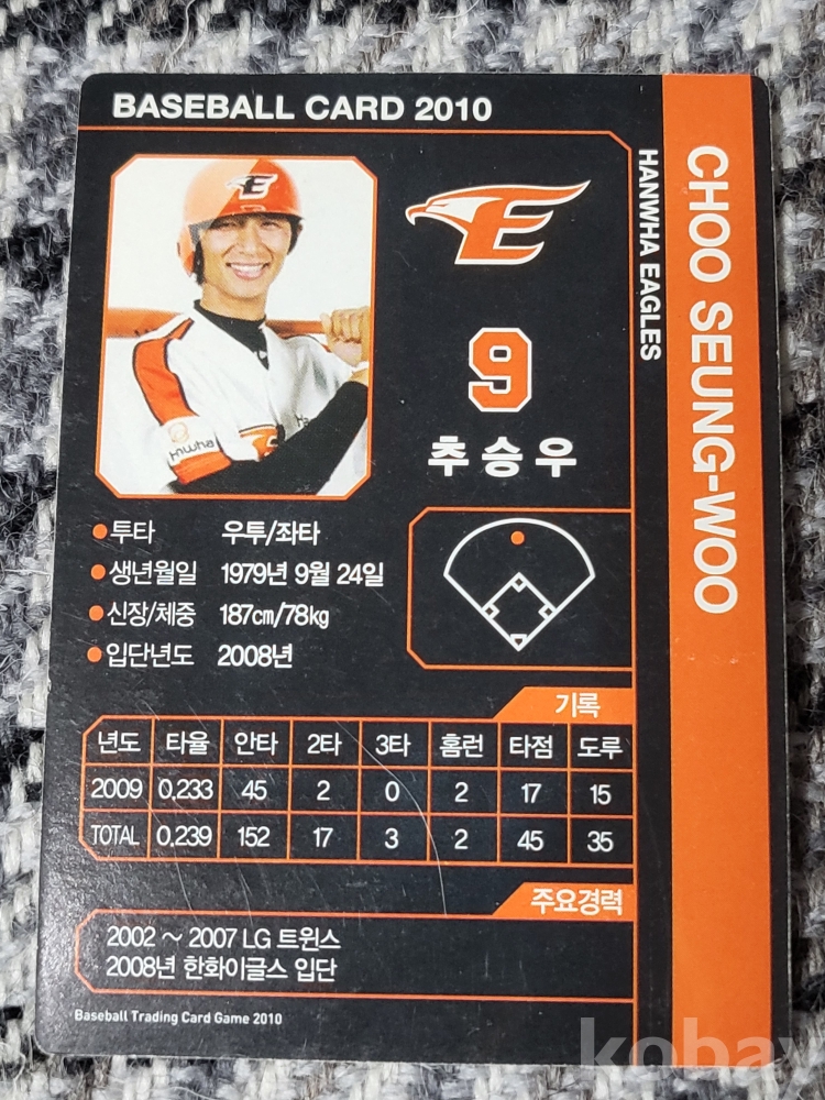 KBO가 공식카드를 발매하지 않던 2010년 해적판으로 발행되었던 희귀 프로야구 트레이딩카드 입니다.