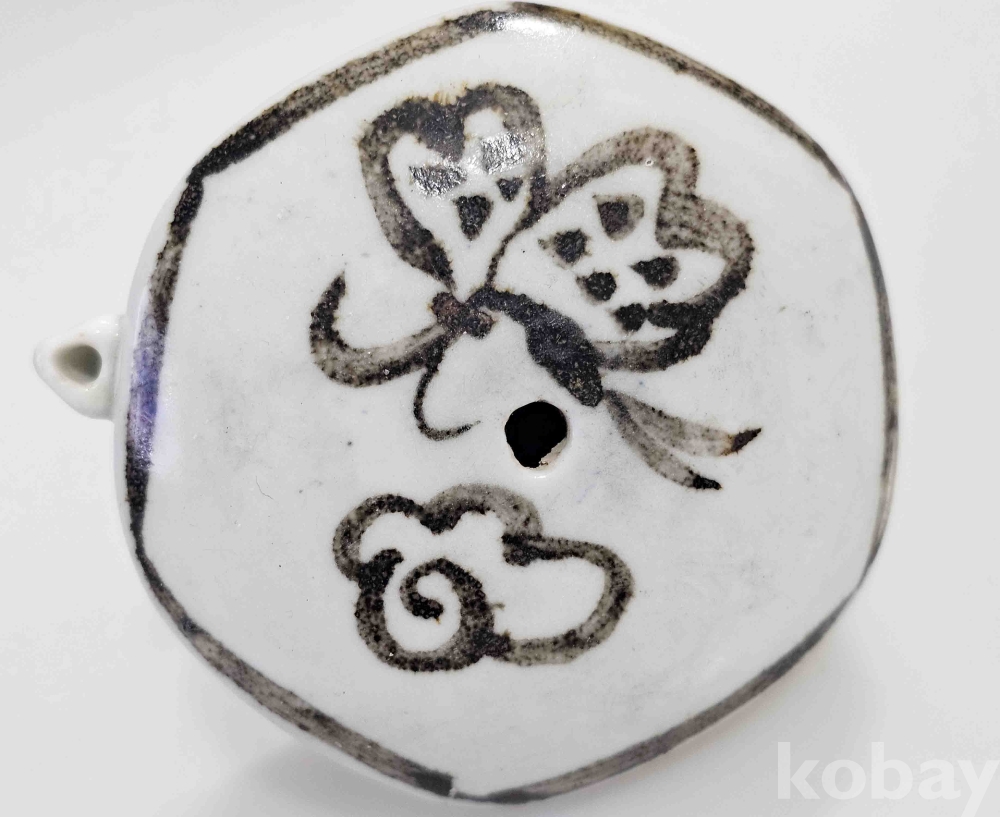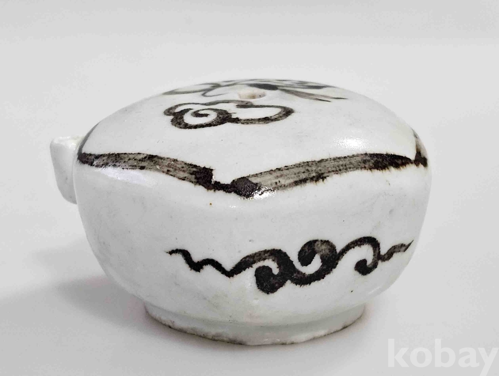 @명칭: 연대감 좋은 연적01 철화백자 나비문 육각 연적