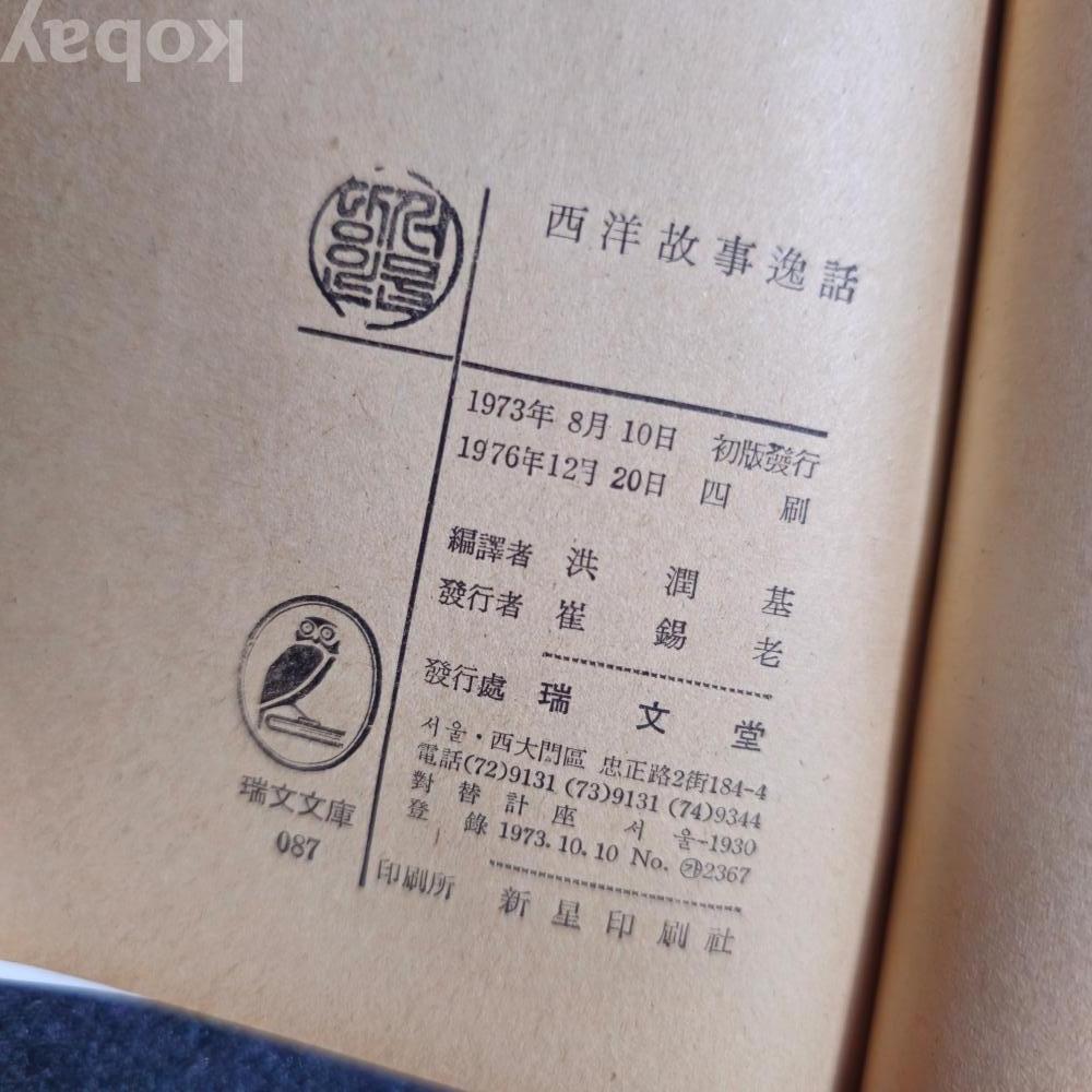 (((천원경매))) (((오래된책/서적))) 西洋故事逸話 - 洪潤基 編譯 (1976년 四刷)