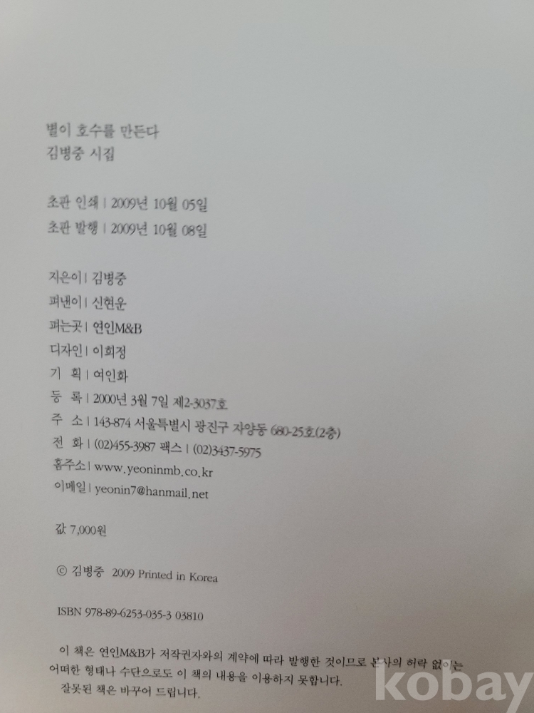 2009년 발간한 제7시집 『별이 호수를 만든다』