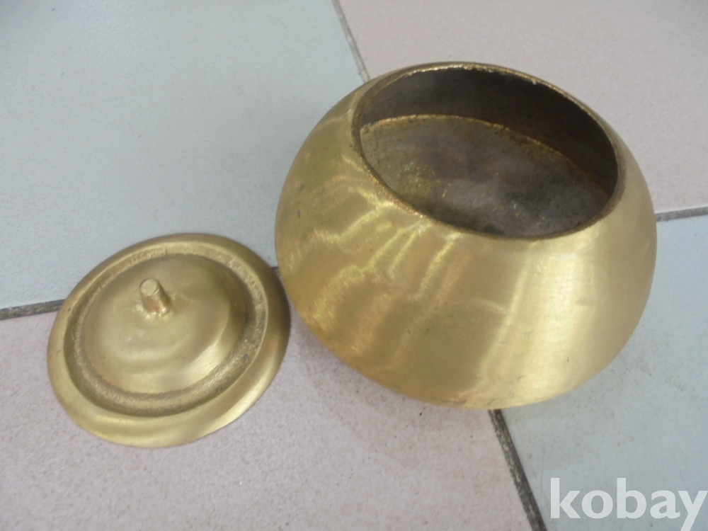 가마 유기요강이 인기품이여서 근대에 만든 앙증스런 무거운 완벽한 유기가마요강 입지름 8 cm 높이 12 cm 외사진참조