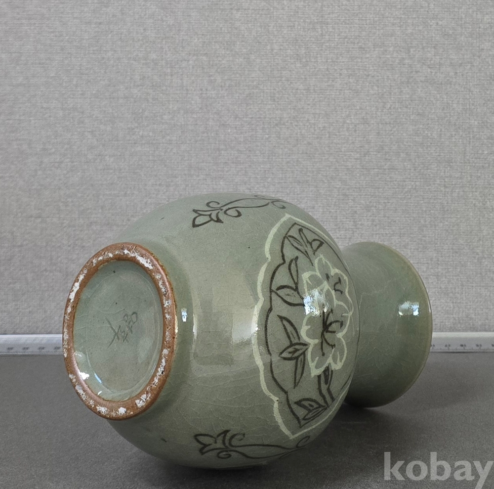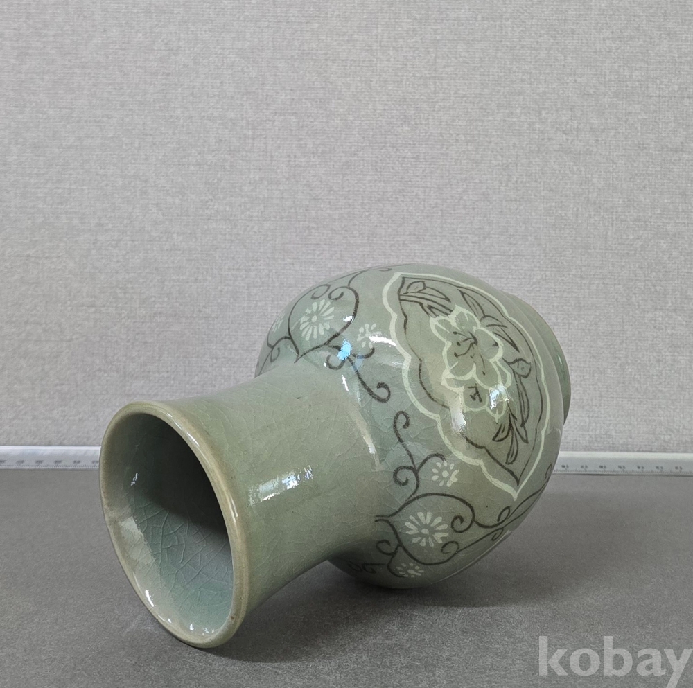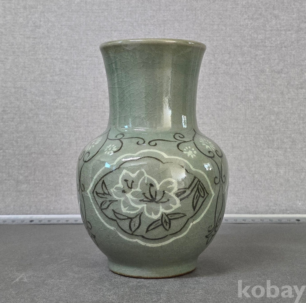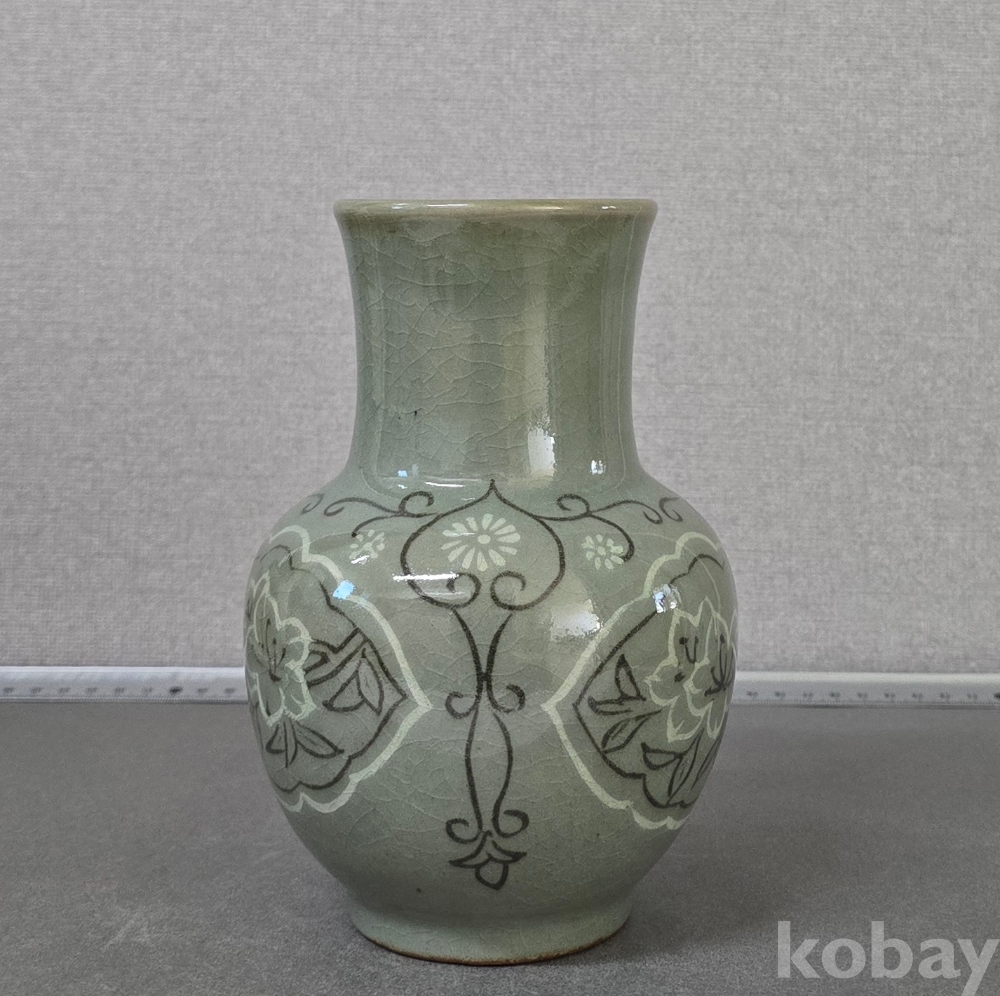 상감청자 화훼문 화병 북한도자기 작품입니다.