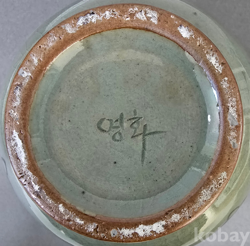 북한청자 특유의 진하고 어두운 색상의 작품으로,