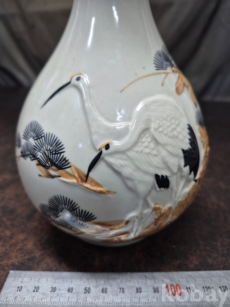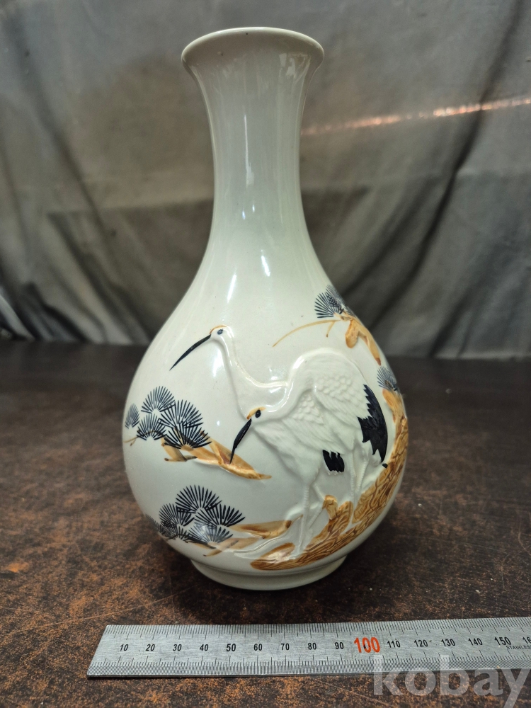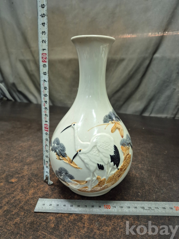 1980년대 도자기 주병 학과 소나무를양각으로 표현해 놓았습니다 15*15*23