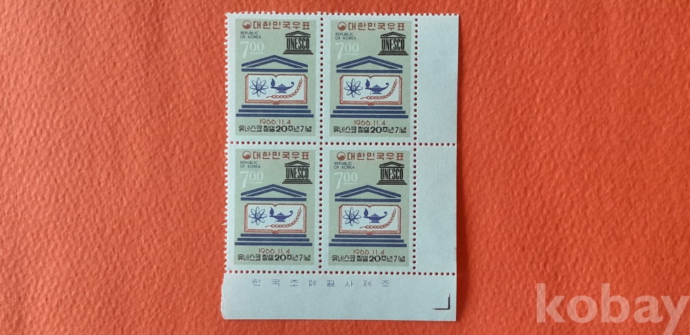 유네스코 창설 20주년 기념 4매 명판 입니다.