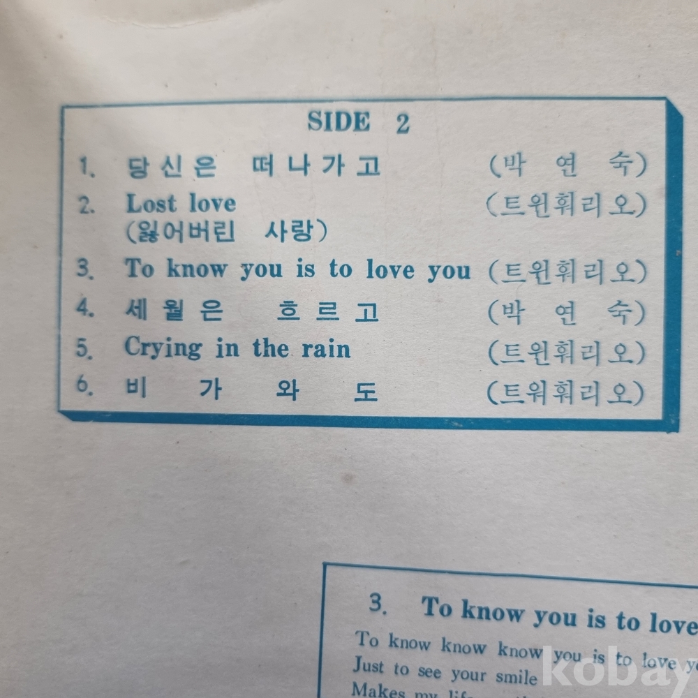 ㅡ펄씨스터즈의 '아이 러브 유"/박연숙의"당신은 떠나가고"ㅡ
