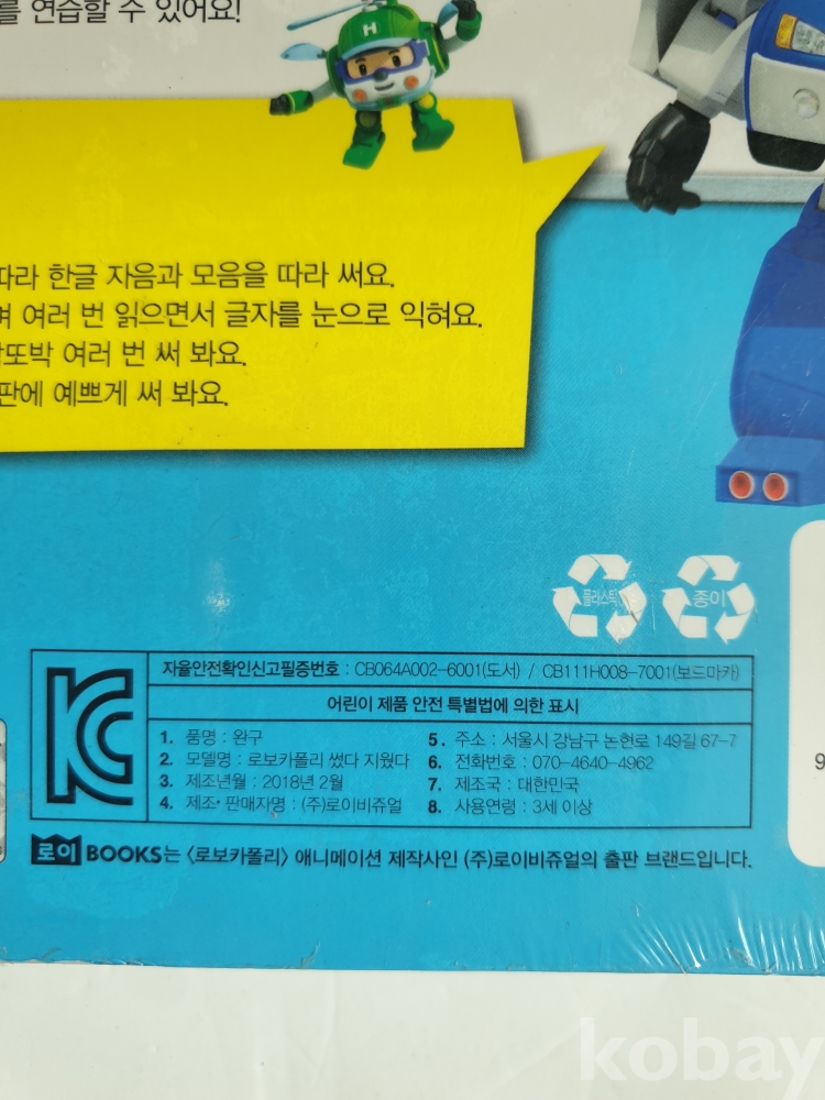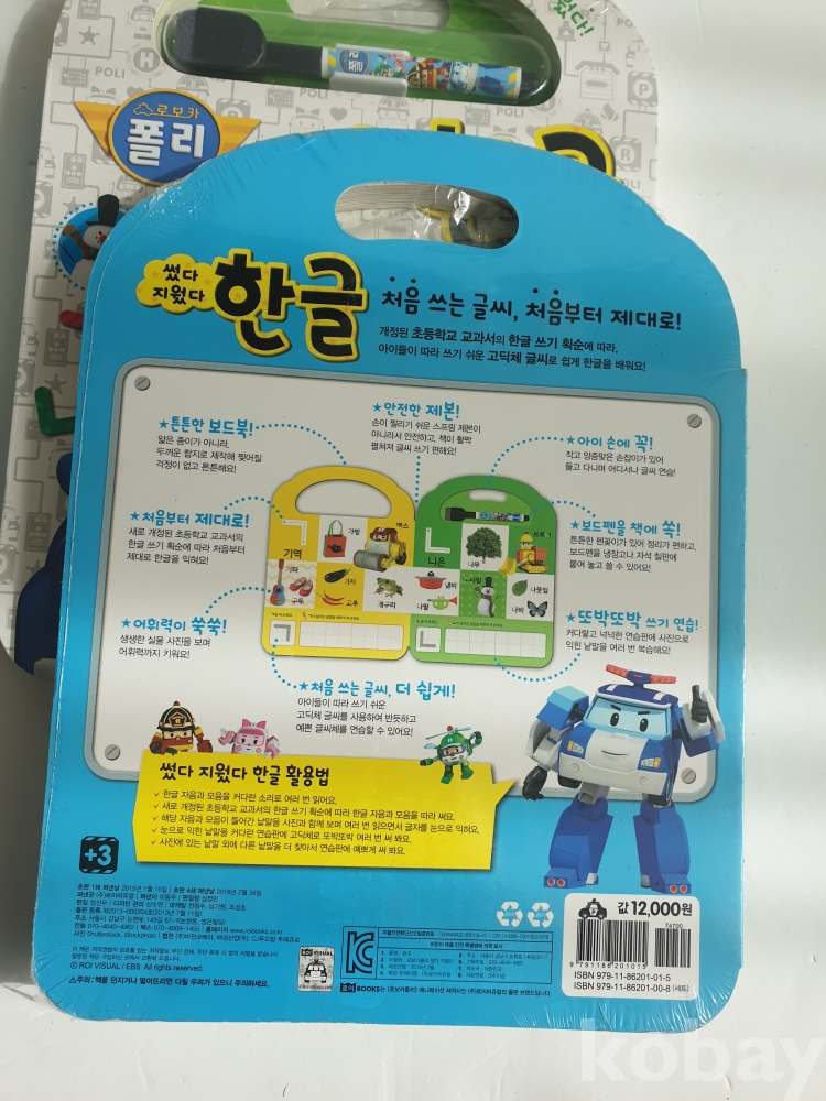 [천원경매] 10-305 로보카폴리 썼다 지웠다 보드형 한글책(래핑된 미개봉 제품, 2개)