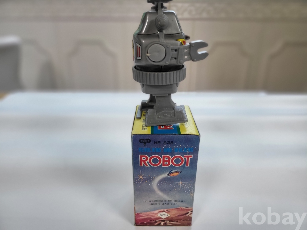 태엽을 감으면 상반신을 360도 돌리면서 앞으로 걸어갑니다