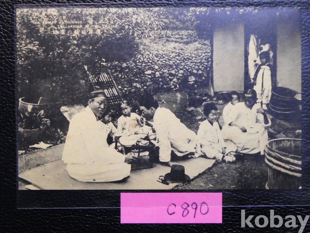 ▣한국근대엽서(진본): 정원에서 조선인 가족의 즐거운 식사 모습, 대정사진공예소 발행/1매.