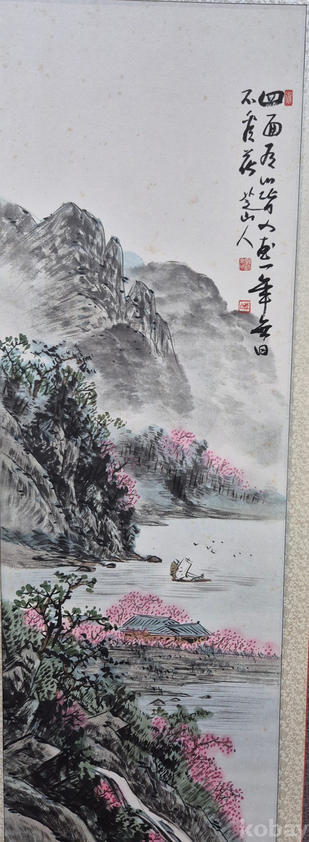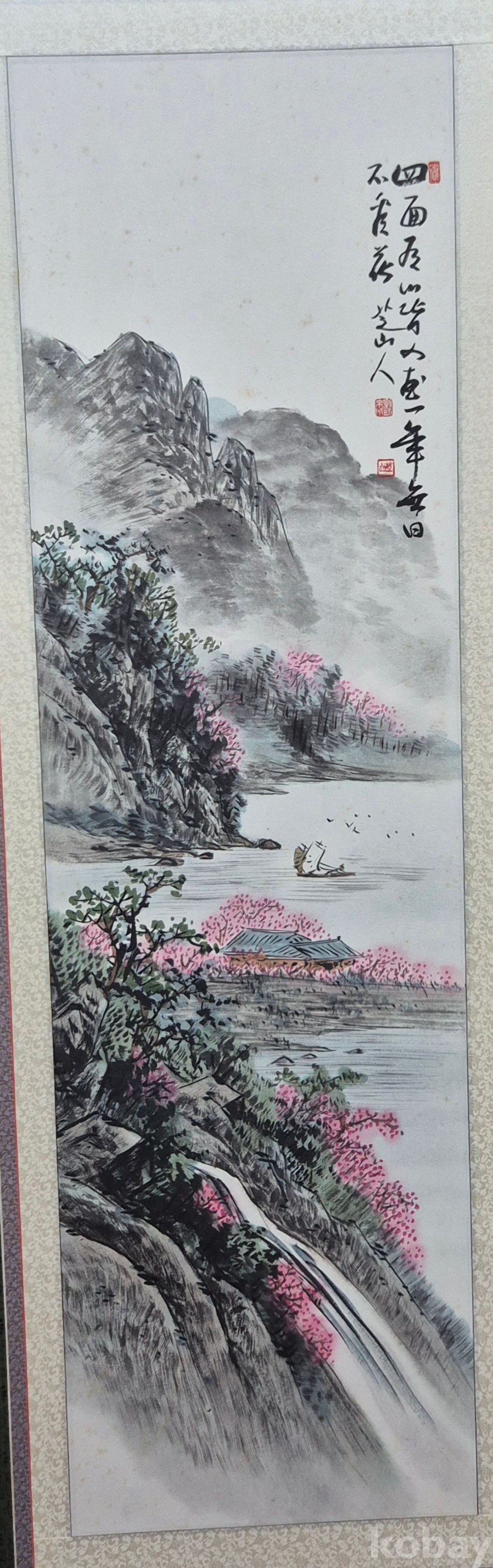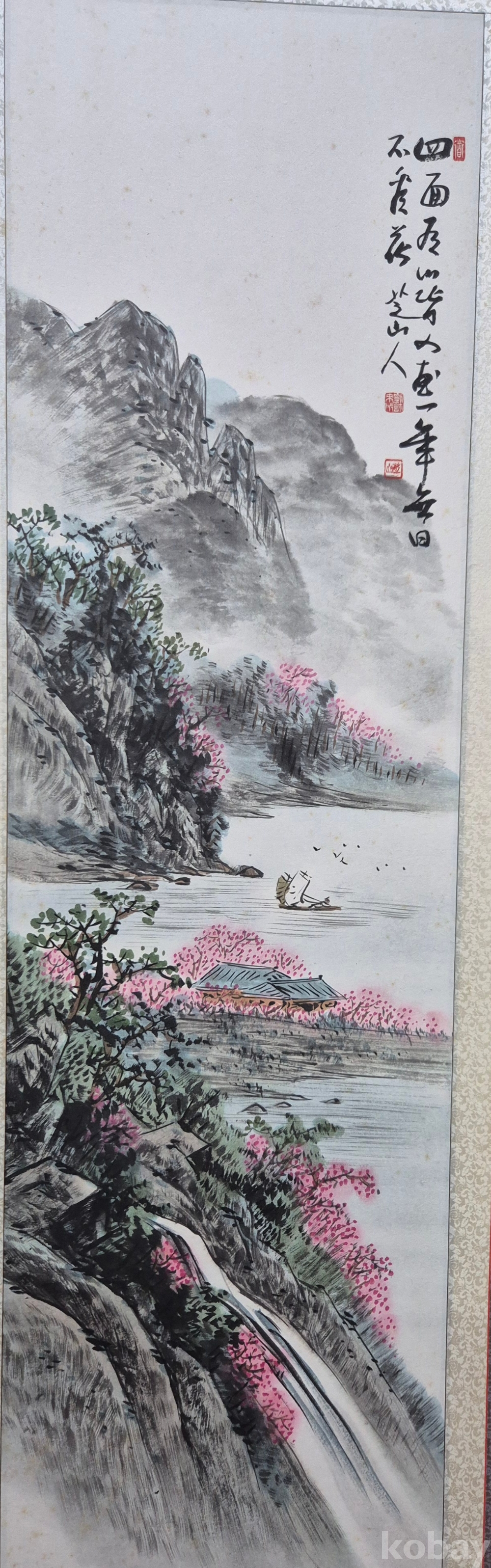 작품성 대단한 복사꽃 향기 가득함이 그대로 전해져 오는 명품 춘견 산수화'이오니 작품 이미지상 수결 및 낙관'등