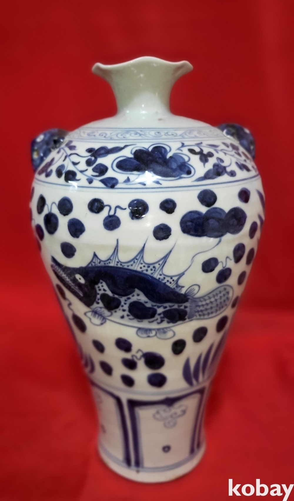 징기스칸 관지 쌍어 문양 화형 매병입니다,