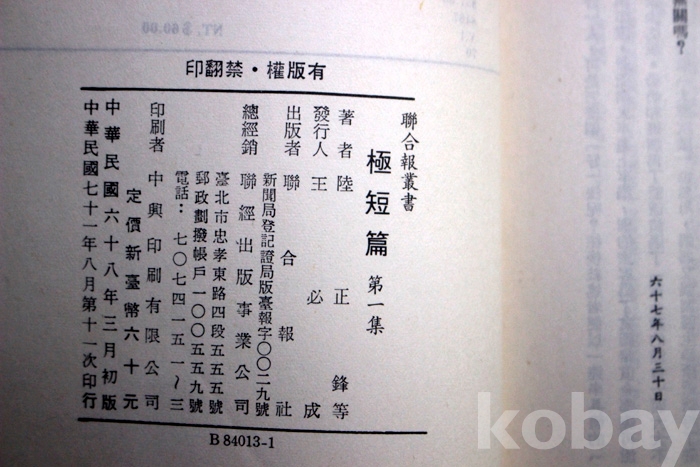 (중국서적) 極短篇 1 - 1982년. 중국발행 ...