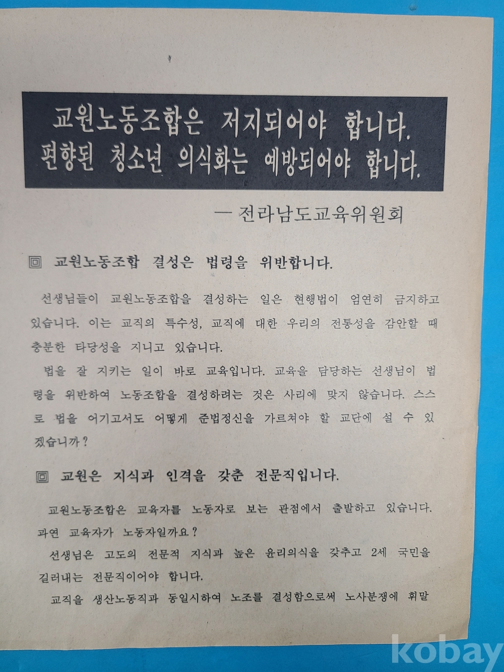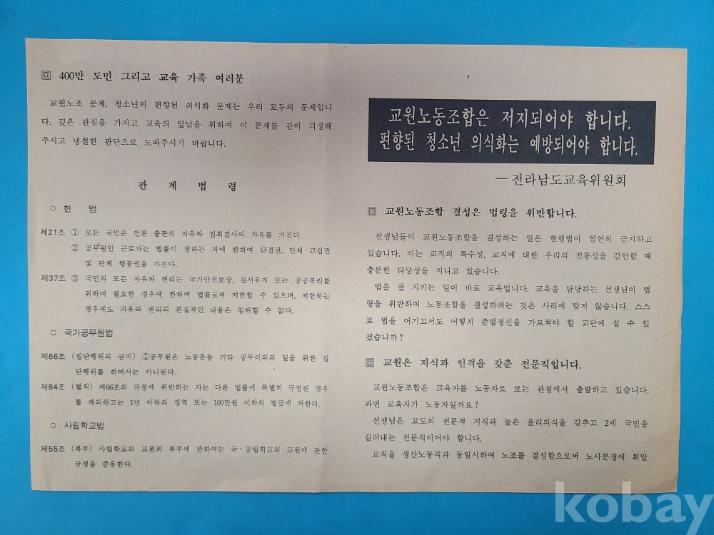 **** 전라남도교육위원회 '교원노동조합' 관련 팜플릿