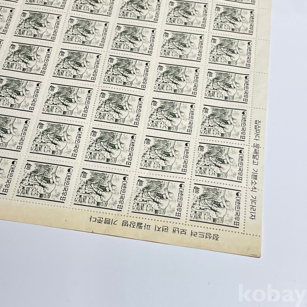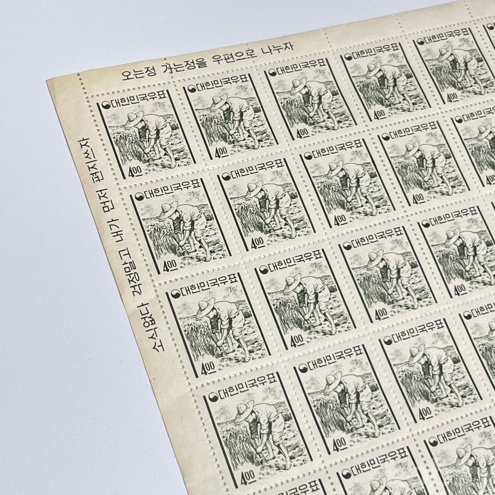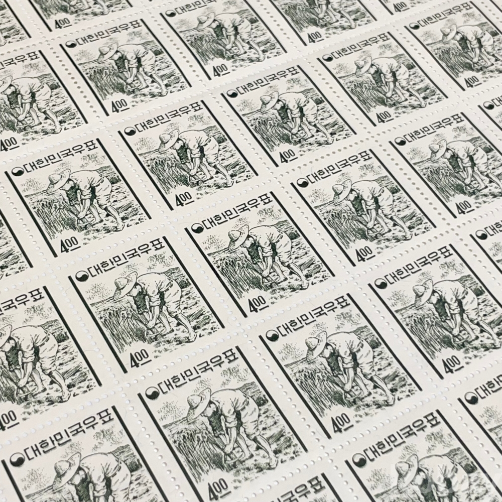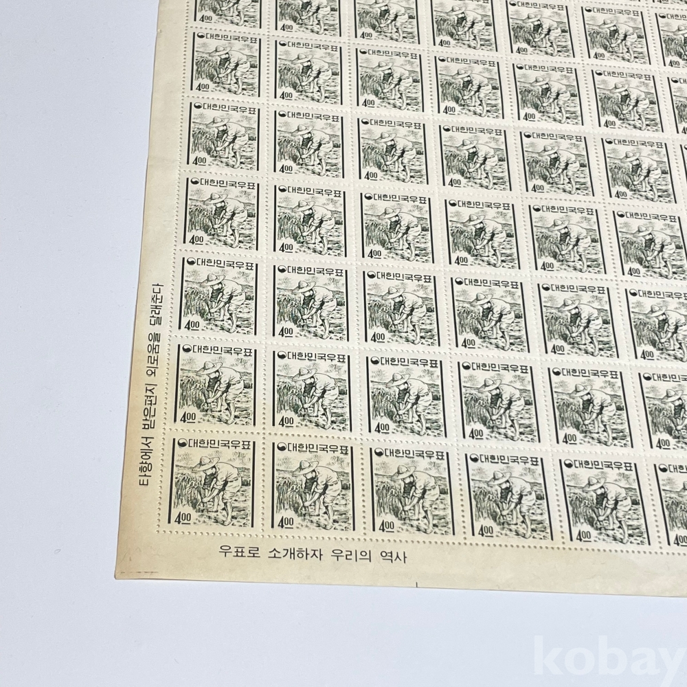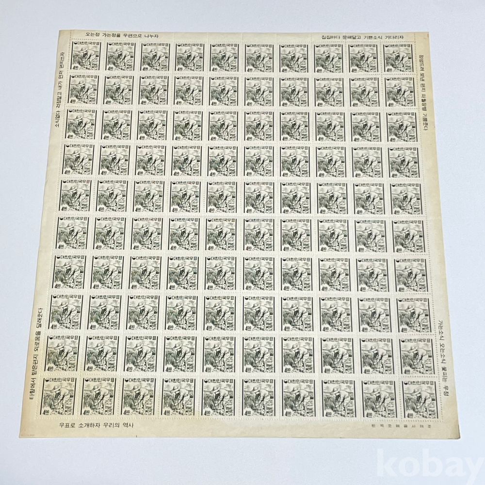 [전지] 1964, 제1차 국산백지보통 농부 100매 전지