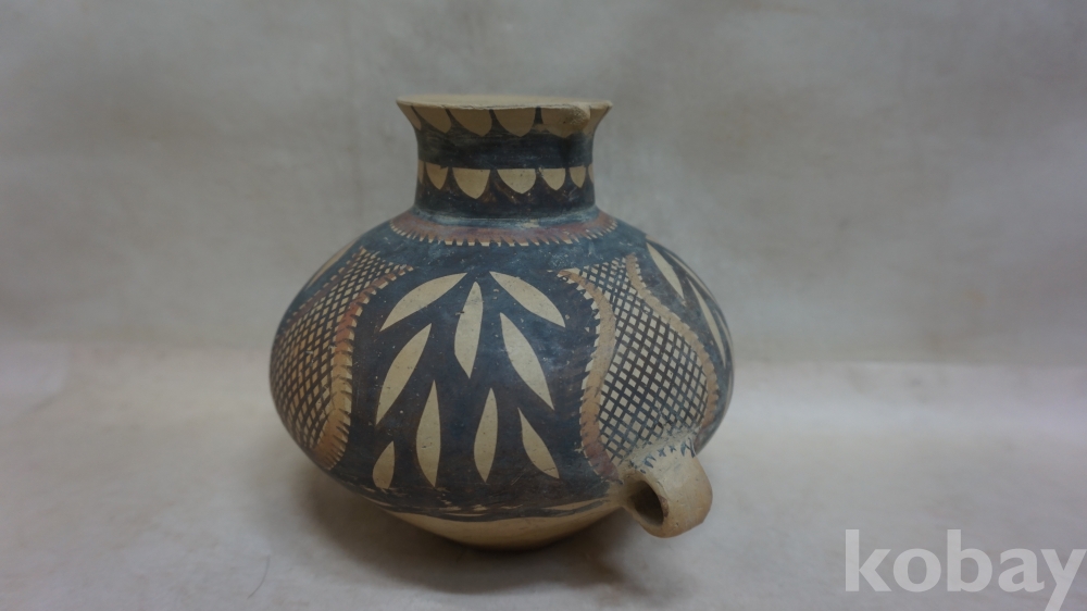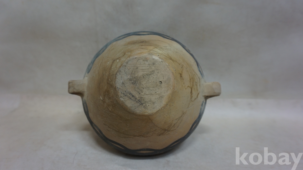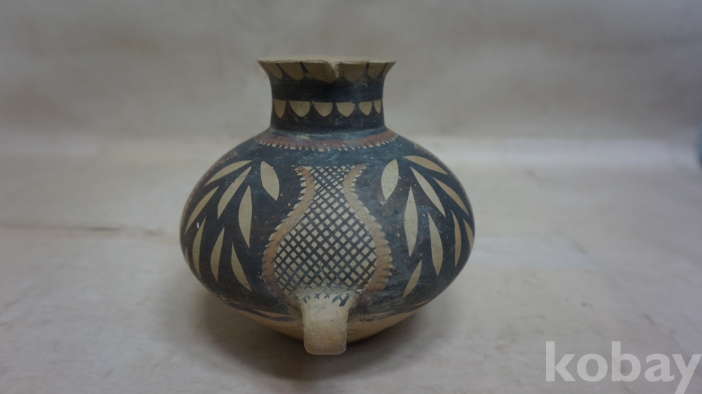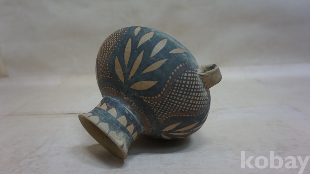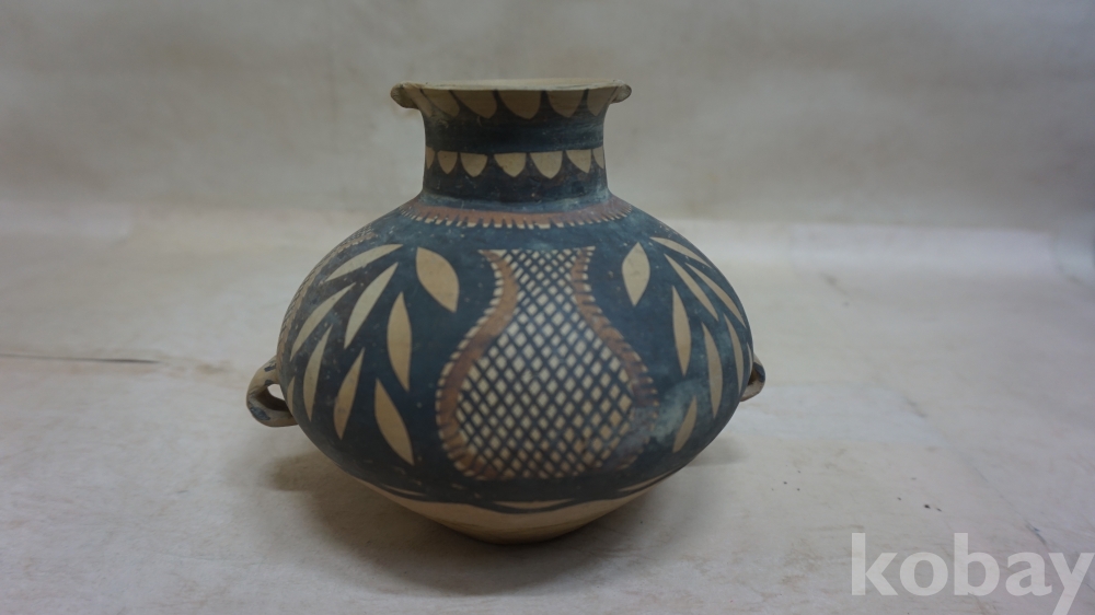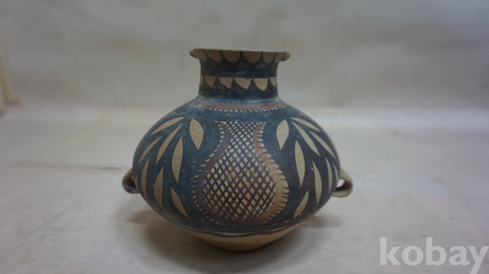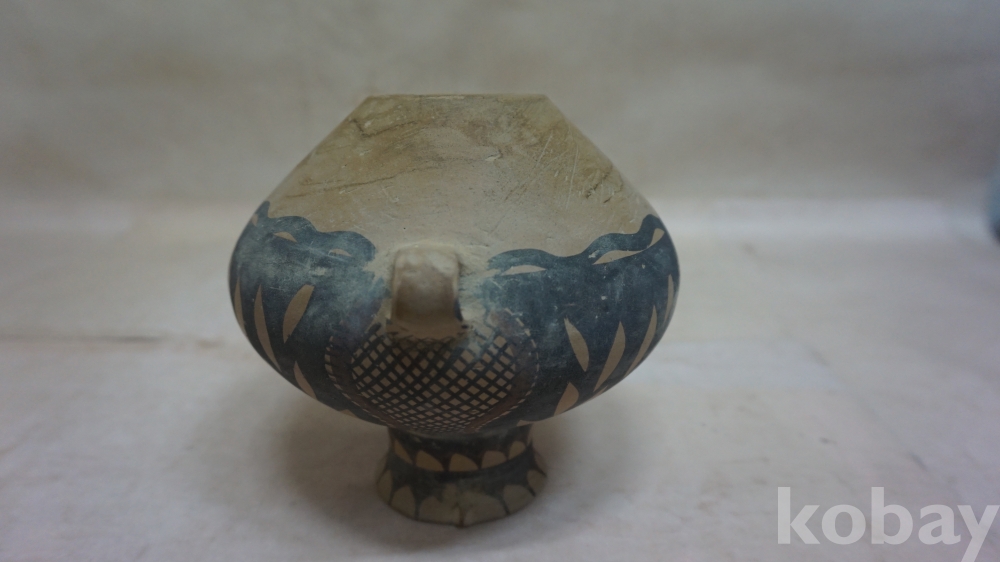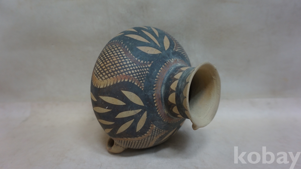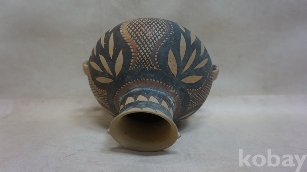 ◈◈앤드슨../양 고리,양귀면,/채색 특이 추상문,ㅡ''목긴 토기 호 한점◈◈