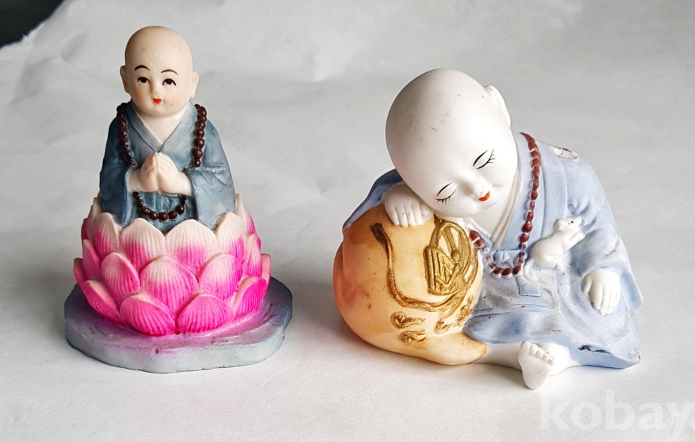 동자승은 도자기로 마들어졌으며 연꽃에스님은