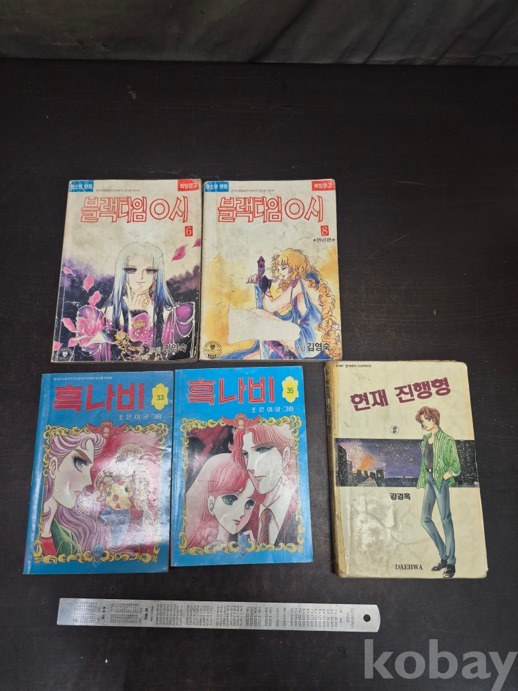 1980-90년대 순정만화 5권 낱질 김영숙님의 블랙타임 0시 조은이님의 흑나비 강역옥님의 현재 진행형 등 16*23*1