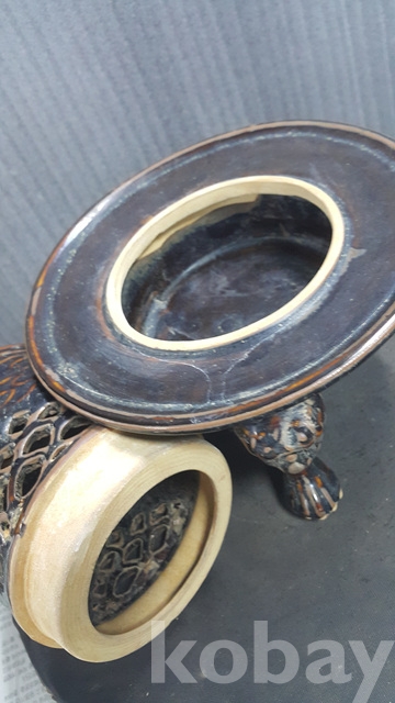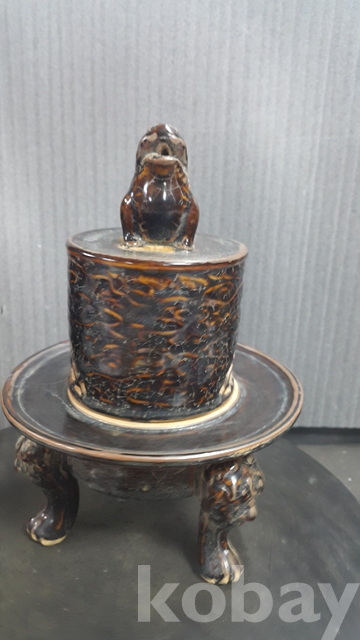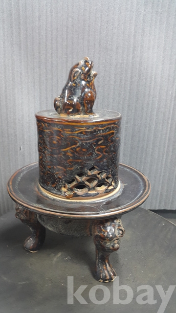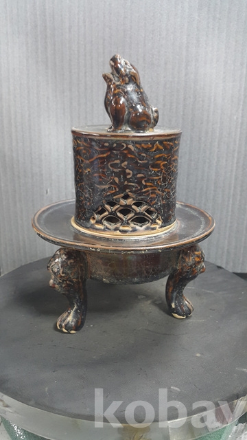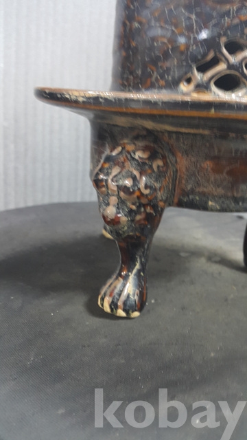 j-78.오래된 송흑유 해태달린 삼발귀면향로