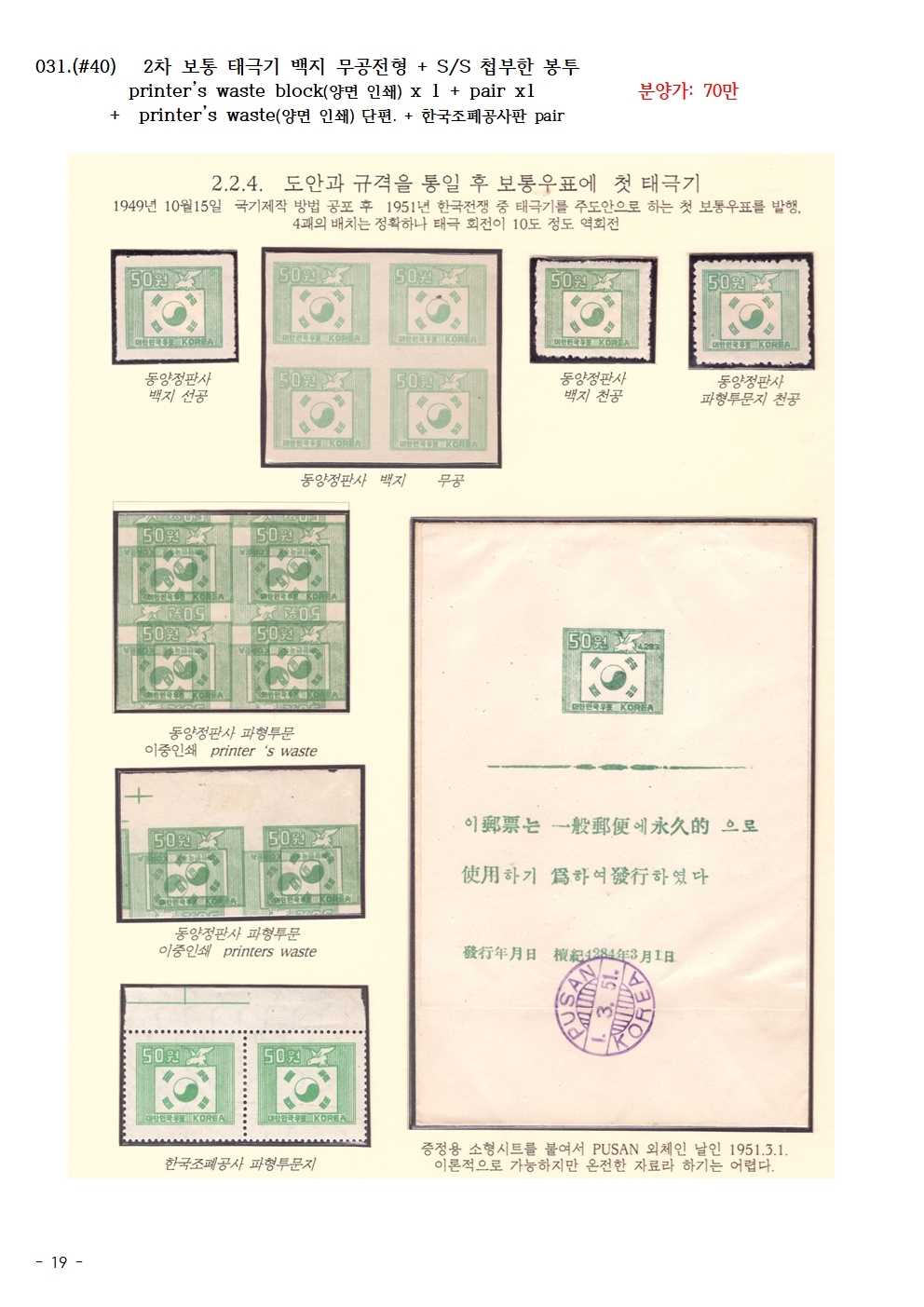 + printer’s waste(양면 인쇄) 단편. + 한국조폐공사판 pair