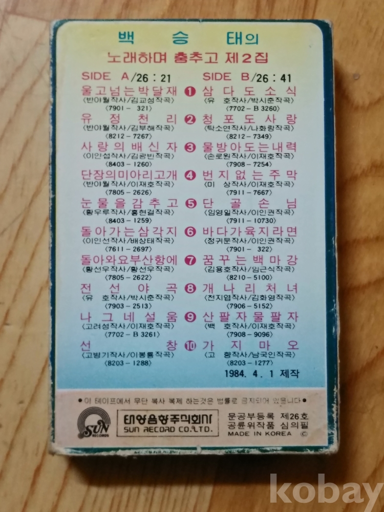 카세트테이프 가수백승태 노래하며 춤추고 자켓은 2집자켓인데 테이프는 제1집입니다