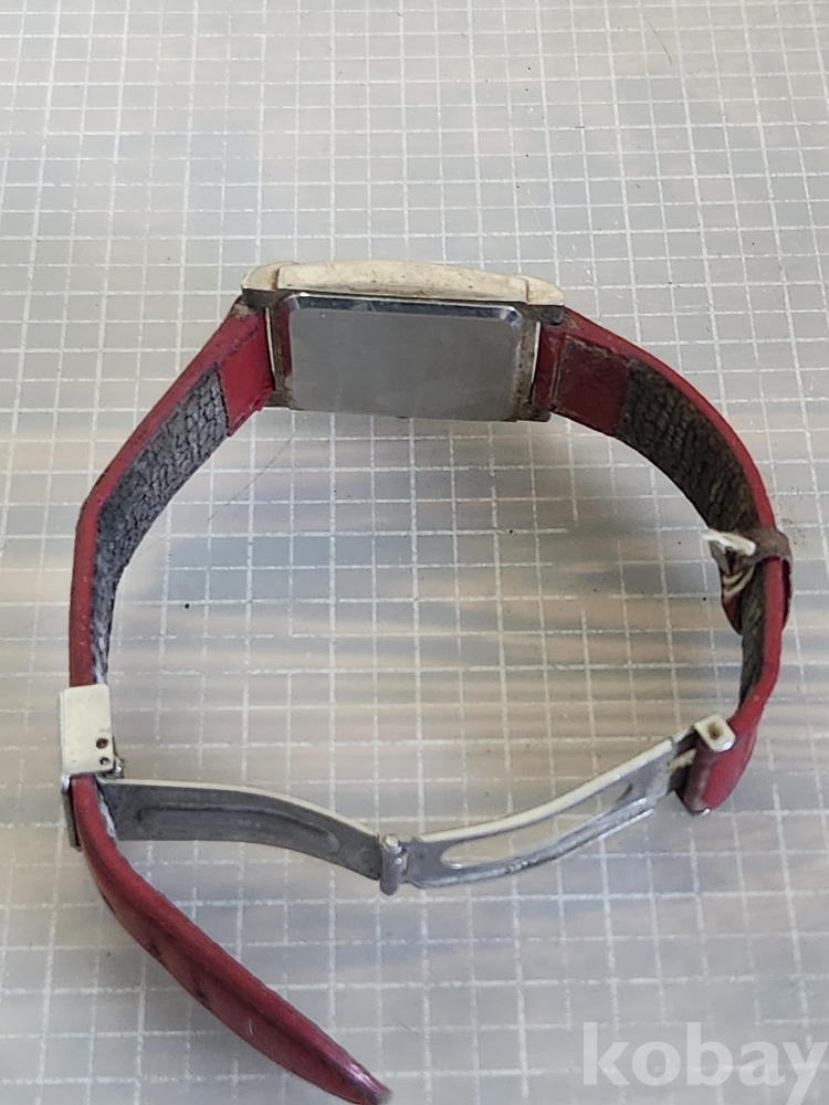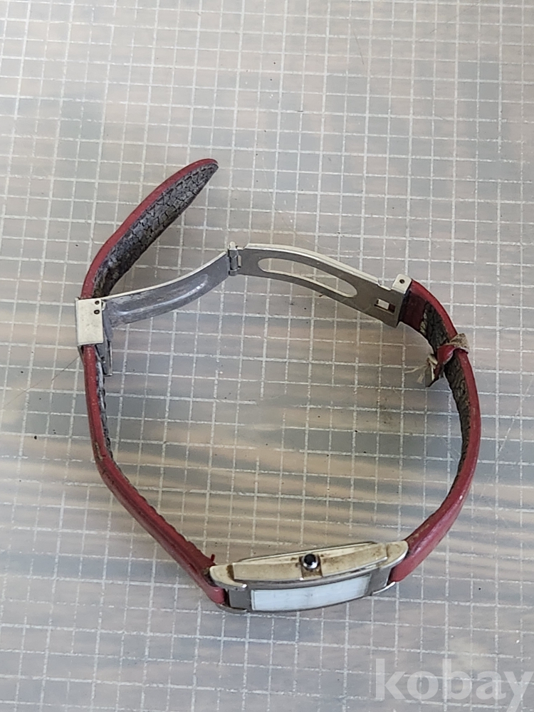 빨간색 가죽 밴드이며, 스테인리스 스틸 백입니다